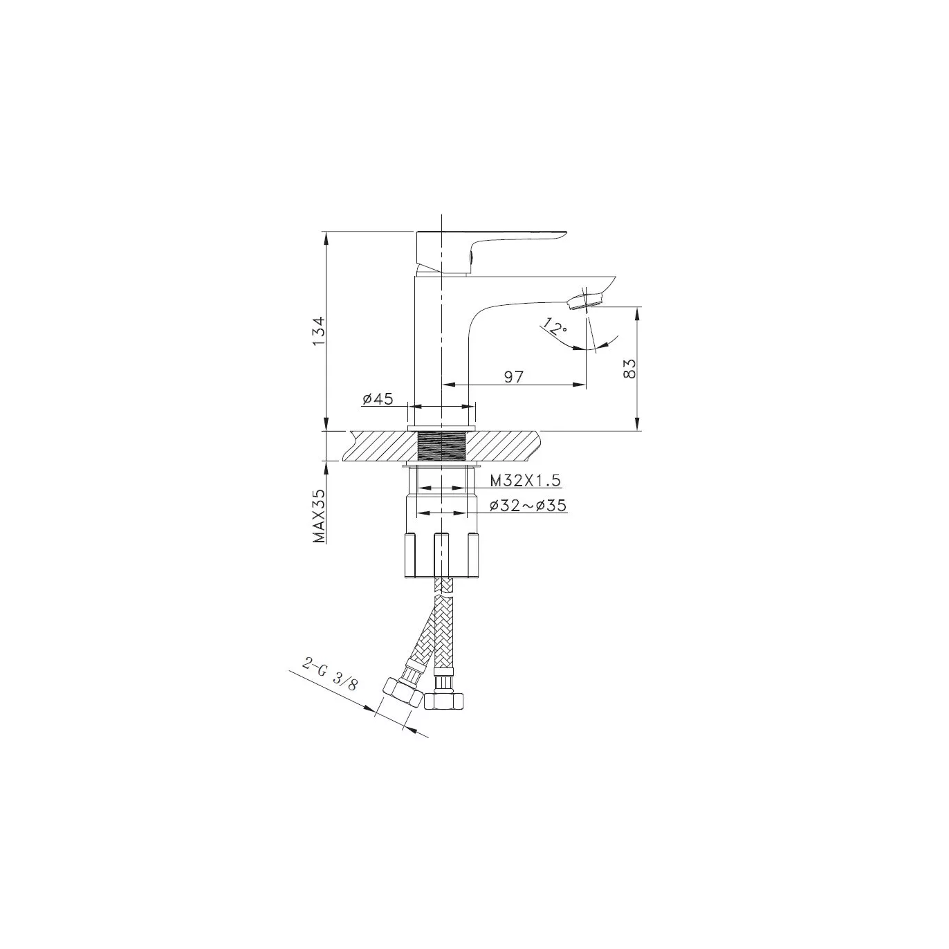 Hauteur totale 134 mm